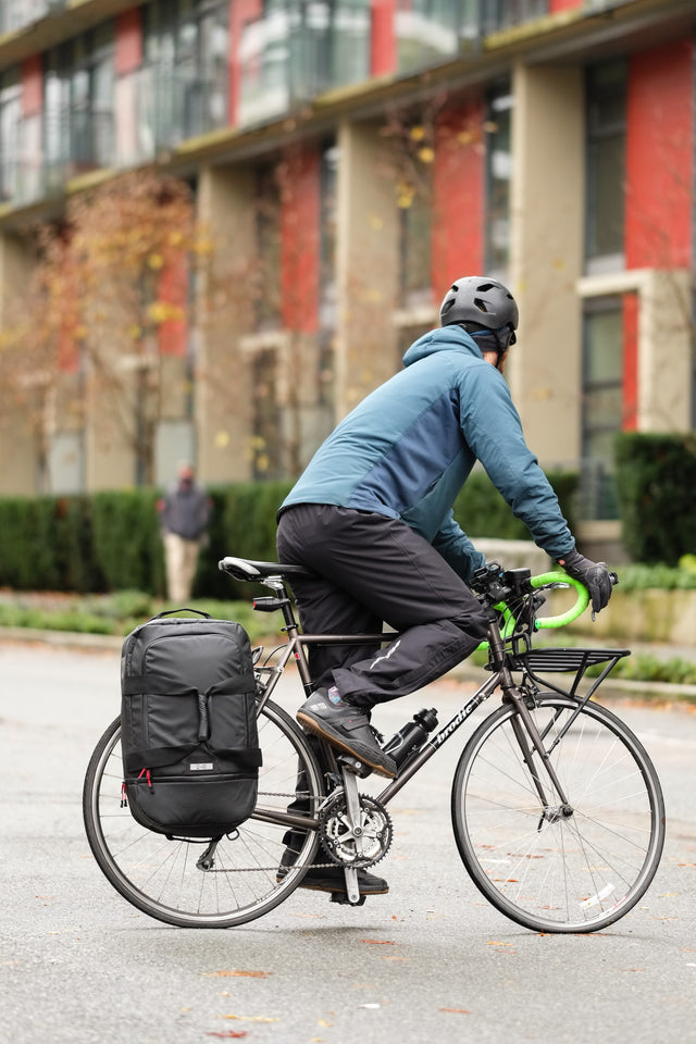 Maximum storage and capability for commuting and travel in a large pannier and duffel bag collision. Zip away the pannier system for weekend travel. The flexible volume end compartment separates your gear and expands as you need. The removable shoulder strap and duffel handles make it easy to carry off the bike.